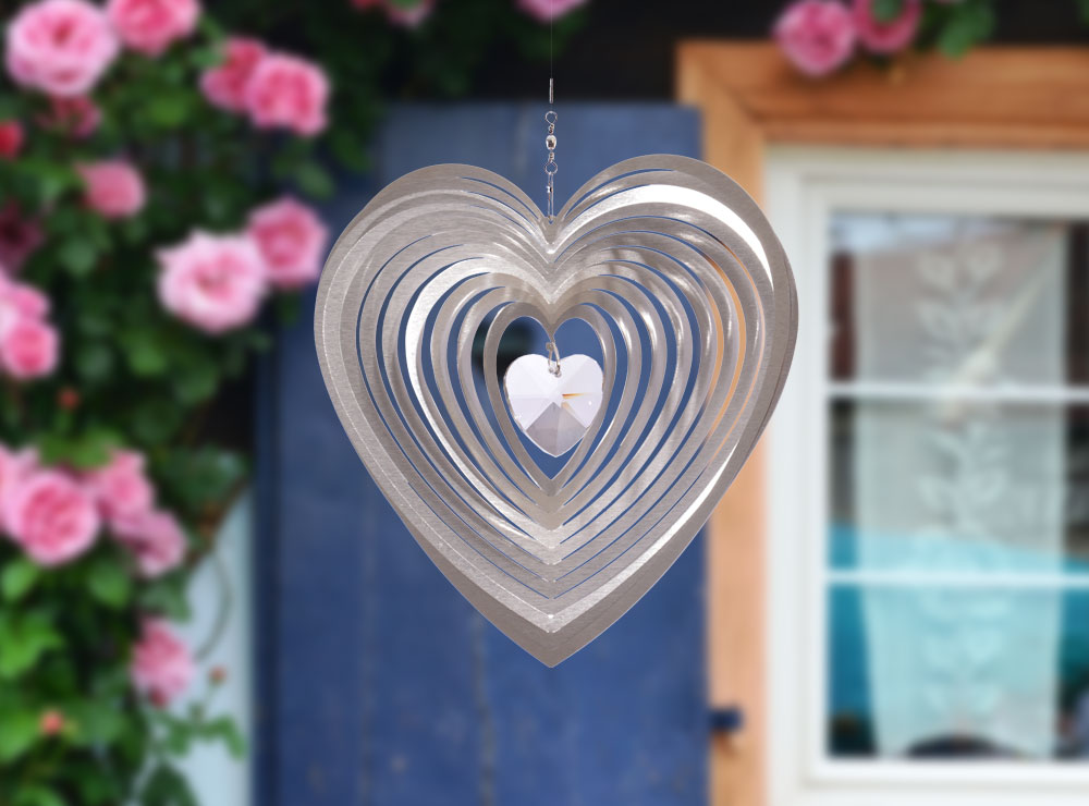 Ein tolles Edelstahl-Windspiel in unserer herzigen Serie - Amica Mia. Der zeitlose Klassiker in Herzform - ausdrucksstark und voller Emotionen, besonders mit dem klaren Kristallherz steht dieses Windspiel für das Gefühl von Gemeinsamkeit.