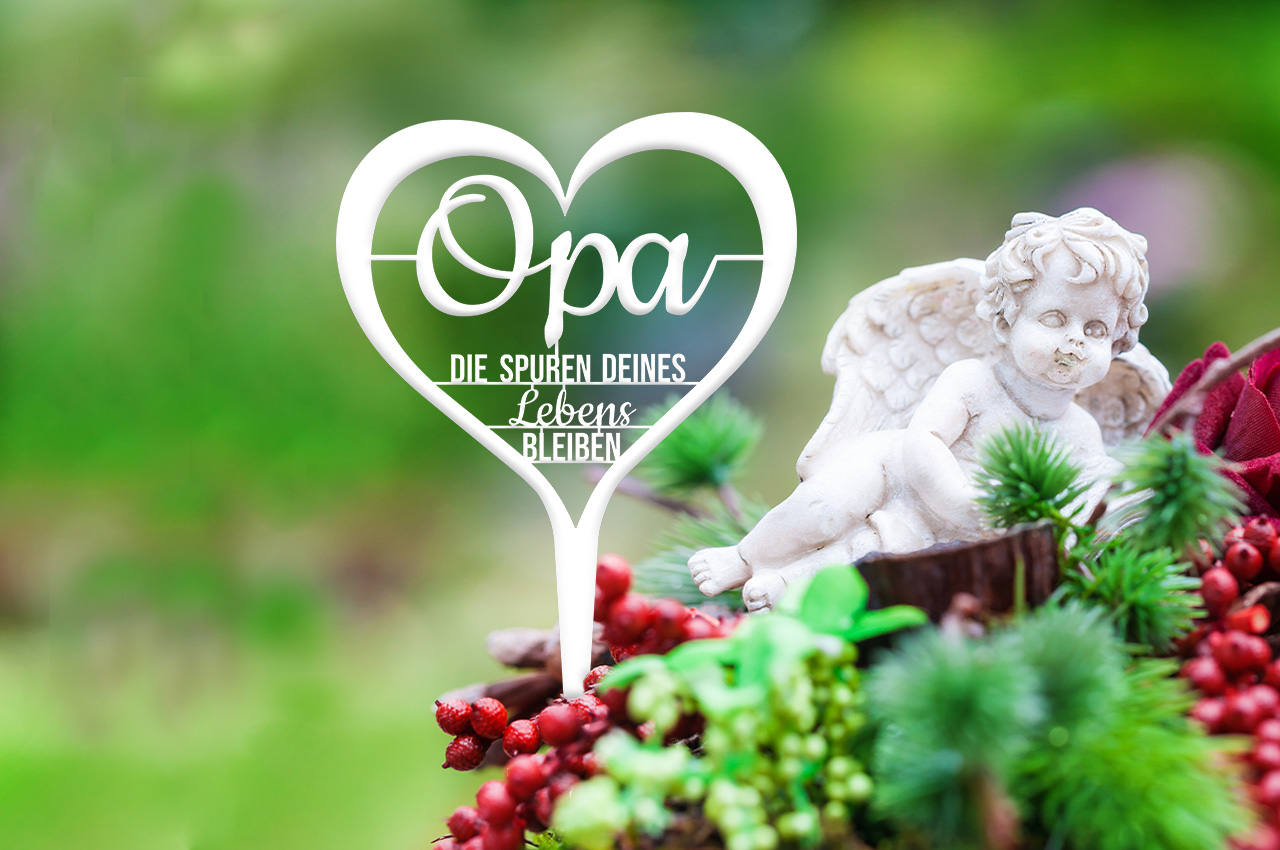 Neben dem traditionellen Grabzubehör wie Grabplatten, Urnenplatten, Gedenktafeln, Trauertafeln, kleinen Engeln, Grabsteinen, Grablaternen oder Grabkerzen, fügt sich dieser Grabschmuck auf dezente Weise ein. Der Stecker eignet sich jedoch auch hervorragend als liebevolle Gartendeko, die als Erinnerung an einen geliebten Menschen dient.