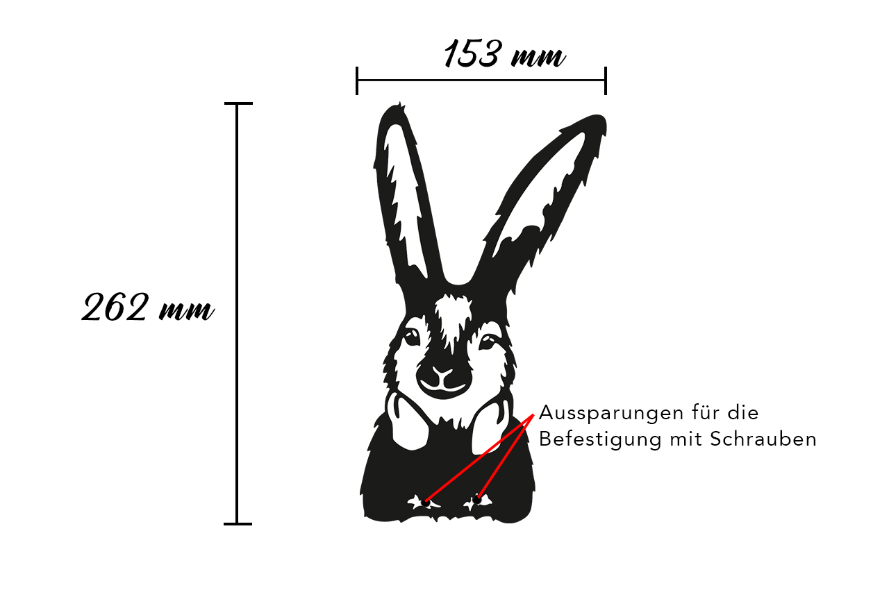Hier hat sich unsere Designerin etwas wirklich Tolles einfallen lassen. Hergestellt aus 1,5 mm starkem Spezialstahl gelasert und aufwändig schwarz pulverbeschichtet. Dieses besondere Fertigungsverfahren macht unsere Hasen-Silhouette rostfrei.