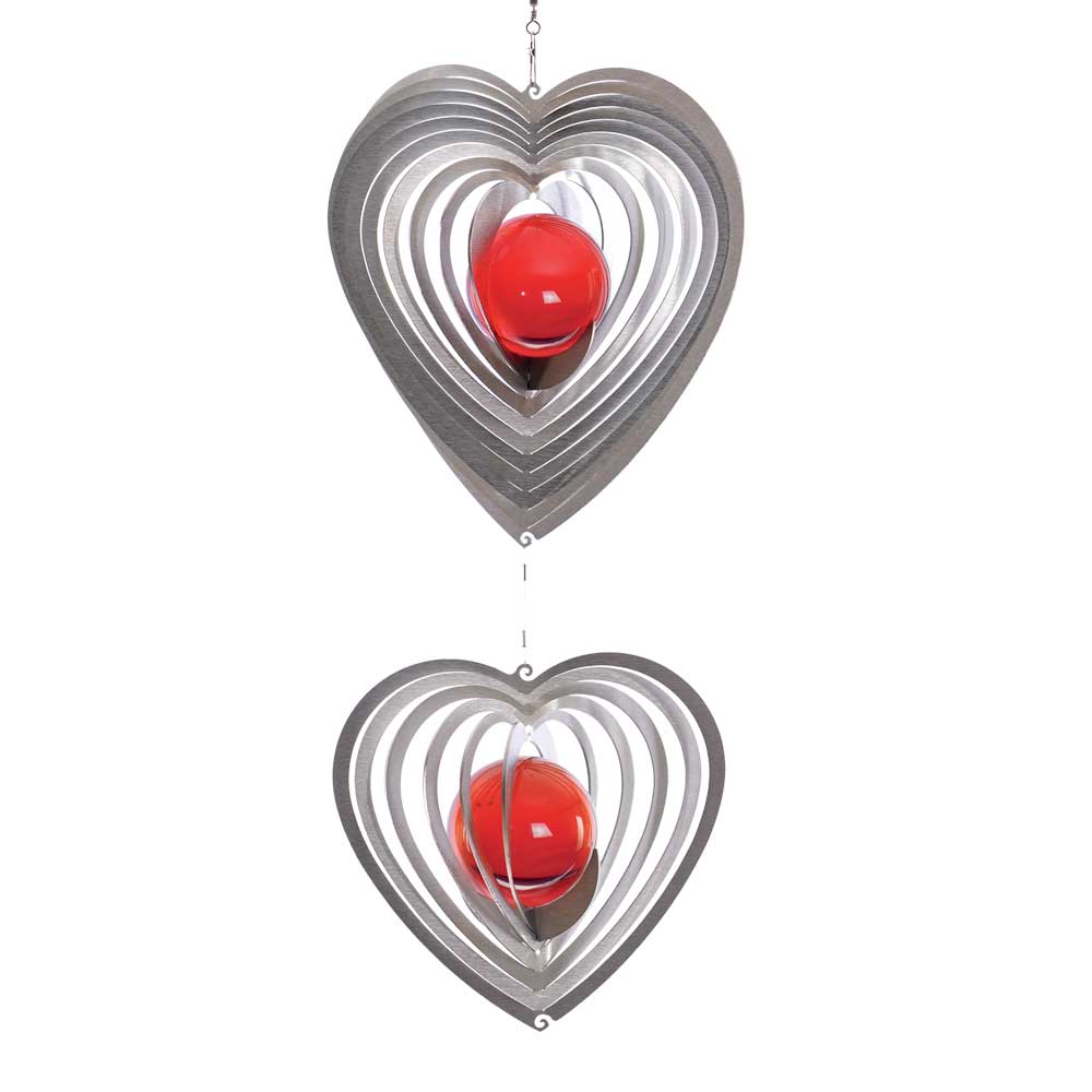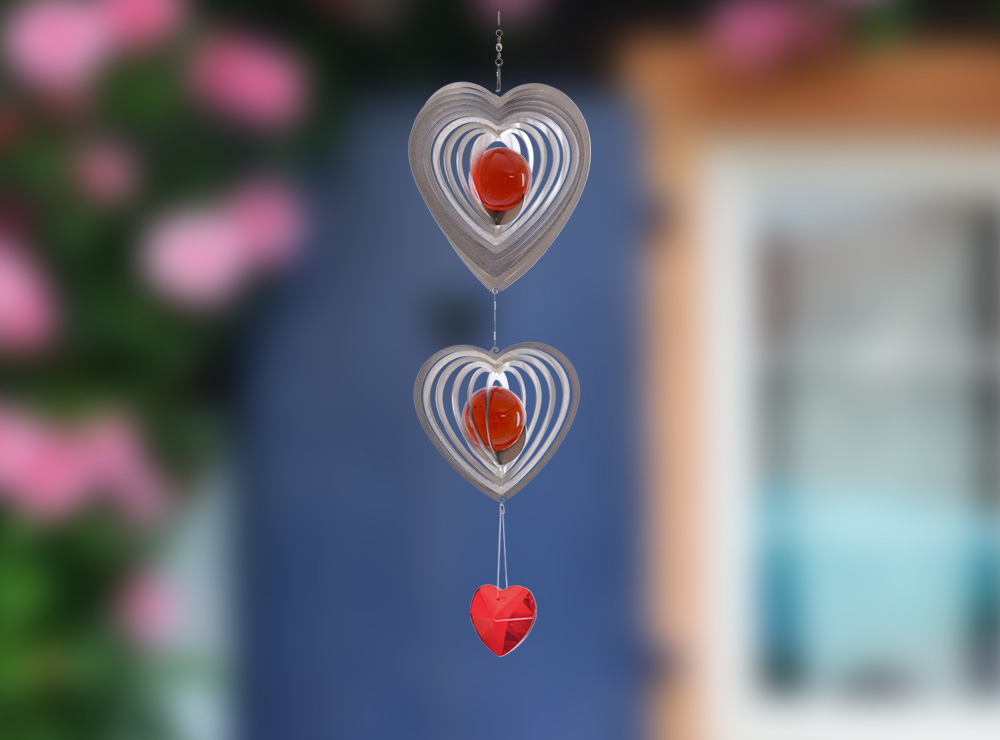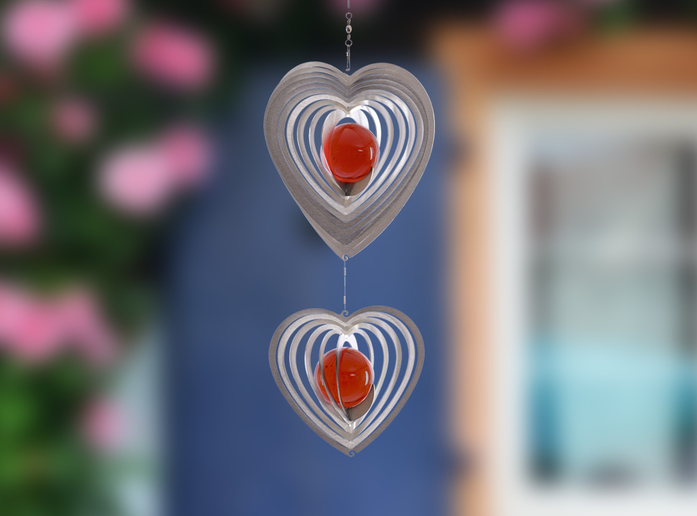 Durch die Kombination von den Windspielen Herzy MINI und Herzy MIDI erhalten Sie ein wunderschönes Edelstahl-Windspiel. Die Besonderheit ist die Aufhängung der zwei Herzen untereinander.