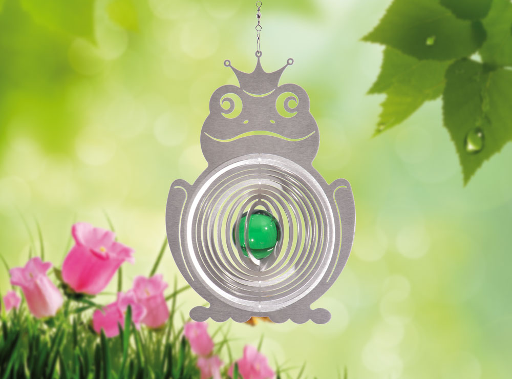 Das Edelstahl-Windspiel Froschkönig mit der 35mm Glaskugel ist auch bekannt unter Grimms Märchen. Lassen Sie es märchenhaft hergehen in Ihrem Garten.