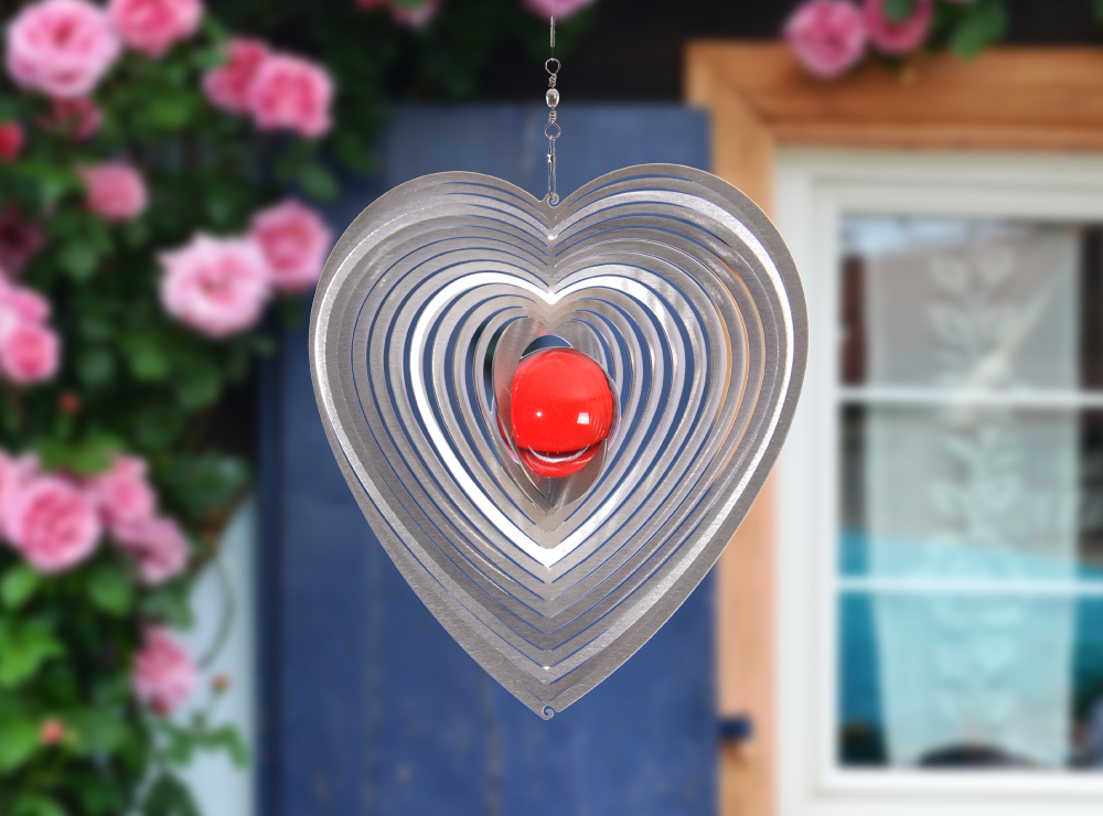 Faszinierender Schimmer! Der zeitlose Klassiker in Herzform - Windspiel Herz HERZY mit 35mm Glaskugel. Ausdrucksstark und voller Emotionen, besonders mit der Kugelfarbe Rubinrot steht dieses Edelstahl-Windspiel für das Gefühl von Gemeinsamkeit. Die glänzenden Lichtreflexe vom Edelstahl-Windspiel wirken harmonisch beruhigend und tauchen seine Umgebung in einen faszinierenden Schimmer.